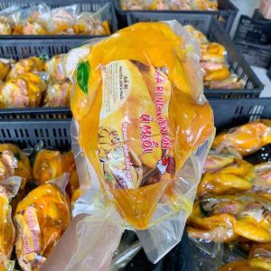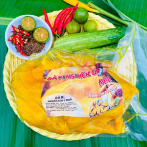 Gà ri nguyên con ủ muối loại 1 Mã 660 là sản phẩm chất lượng cao, được chế biến 100% từ gà tươi qua tuyển chọn, đảm bảo gà có trọng lượng và màu sắc đồng đều. Mỗi con gà có trọng lượng dao động từ 1,25 đến 1,5kg. Gà được đem đi chế biến ngay sau khi giết mổ giúp gia vị thấm đều và giữ nguyên được chất lượng như gà tươi, thớ thịt đỏ hồng, lớp da vàng, giòn béo ngậy . Gà ri ủ muối được chế biến từ gà tươi đã qua kiểm định chất lượng, ủ bằng các loại thảo mộc, hương thơm tự nhiên, không hóa chất, không chất bảo quản.